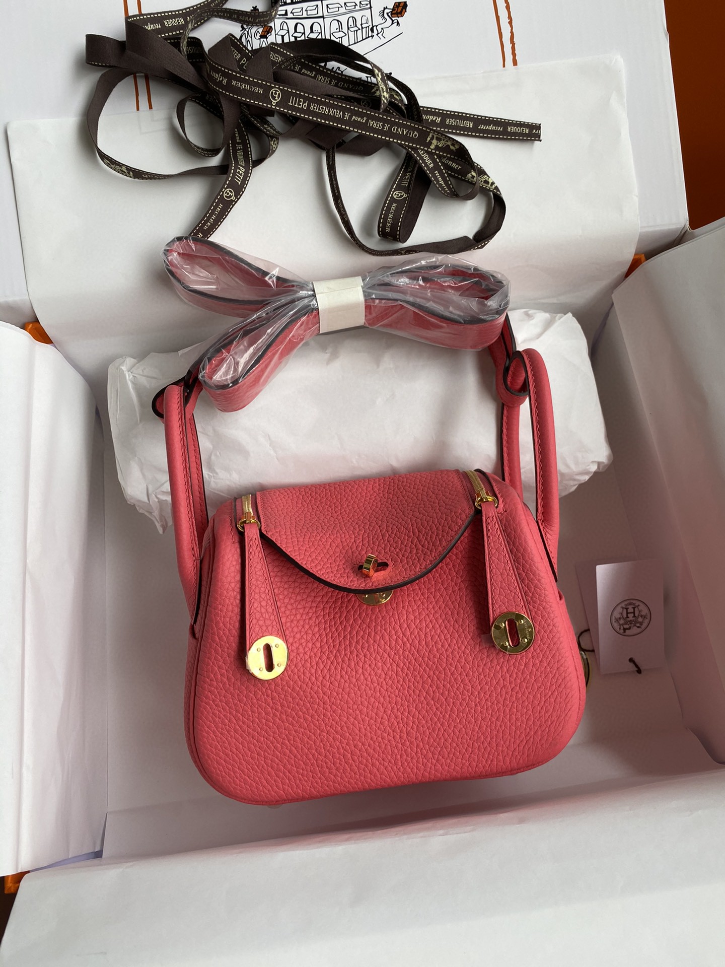エルメス リンディ Mini Lindy 19 半分手作り 写真色/金具ゴールド 2023AMLINDY-0187