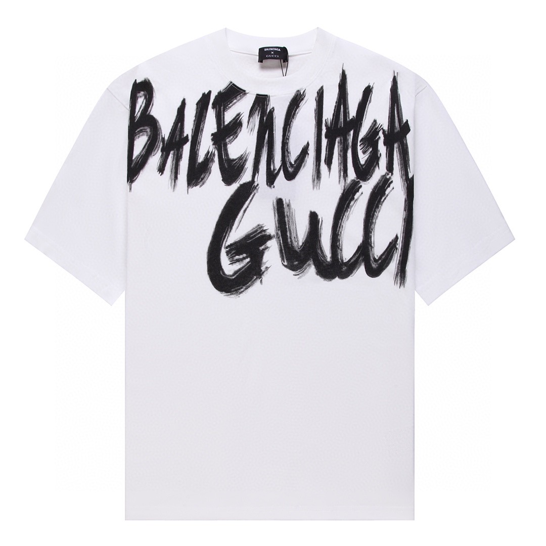 グッチ×バレンシアガ カジュアル ホワイト 半袖 Tシャツ コットン 2305LDJ105-GU5633