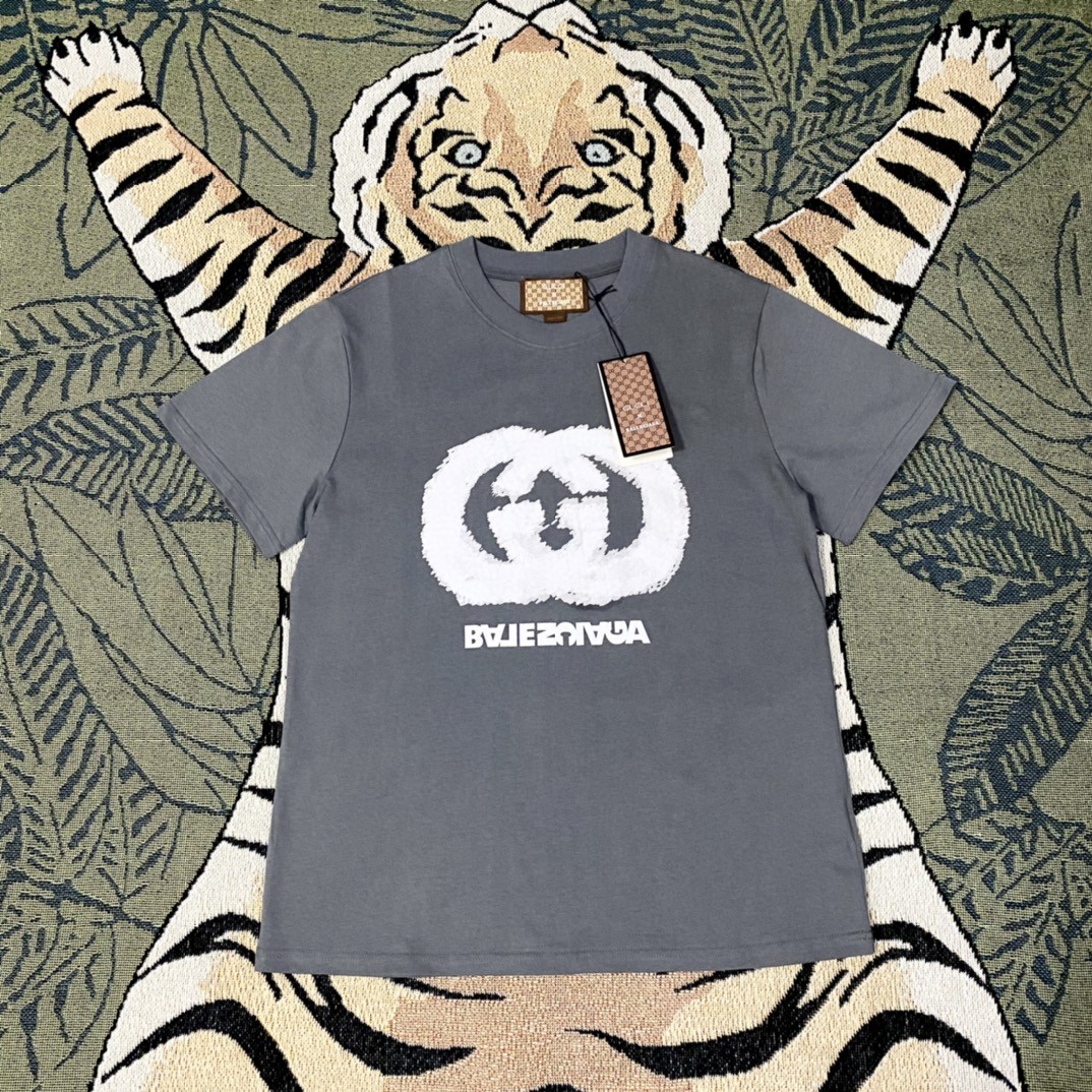 22SS激安 グッチ×バレンシアガ 半袖Tシャツ 夏季 トップス 恋人 2204WLSJ110-GU26919