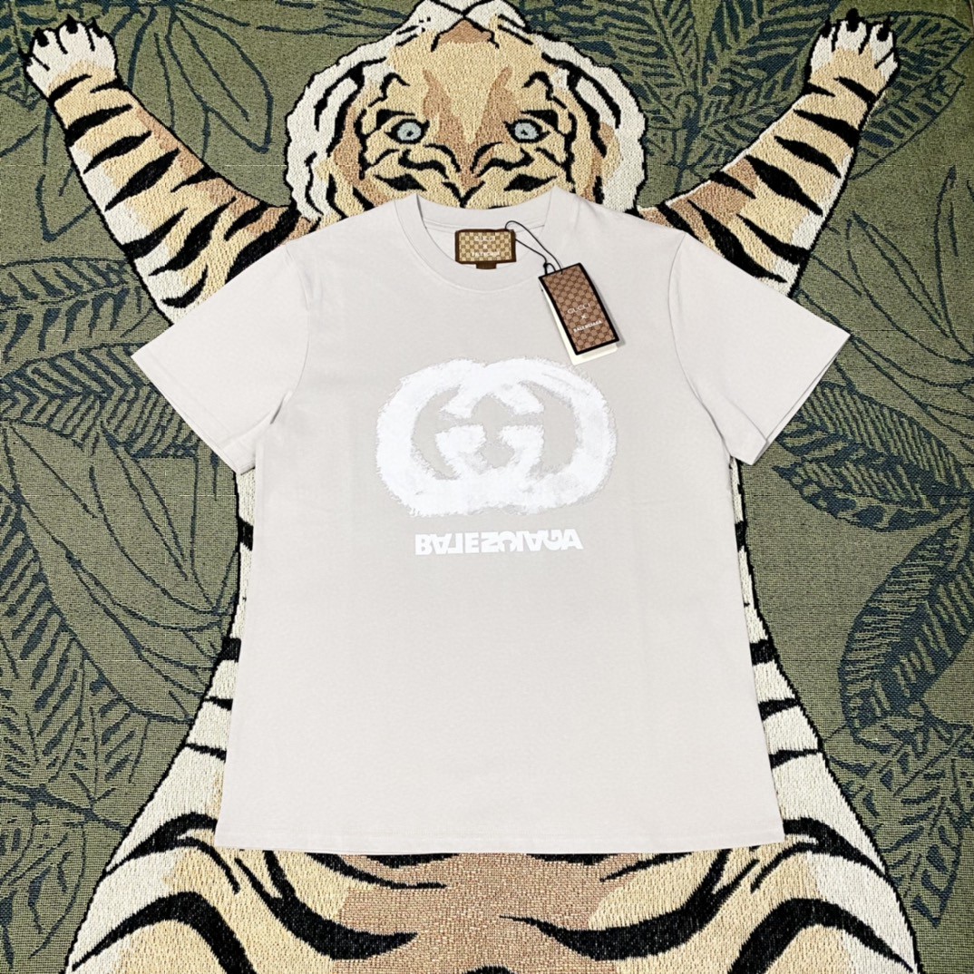 22SS激安 グッチ×バレンシアガ 半袖Tシャツ 夏季 トップス 恋人 2204WLSJ110-GU26918