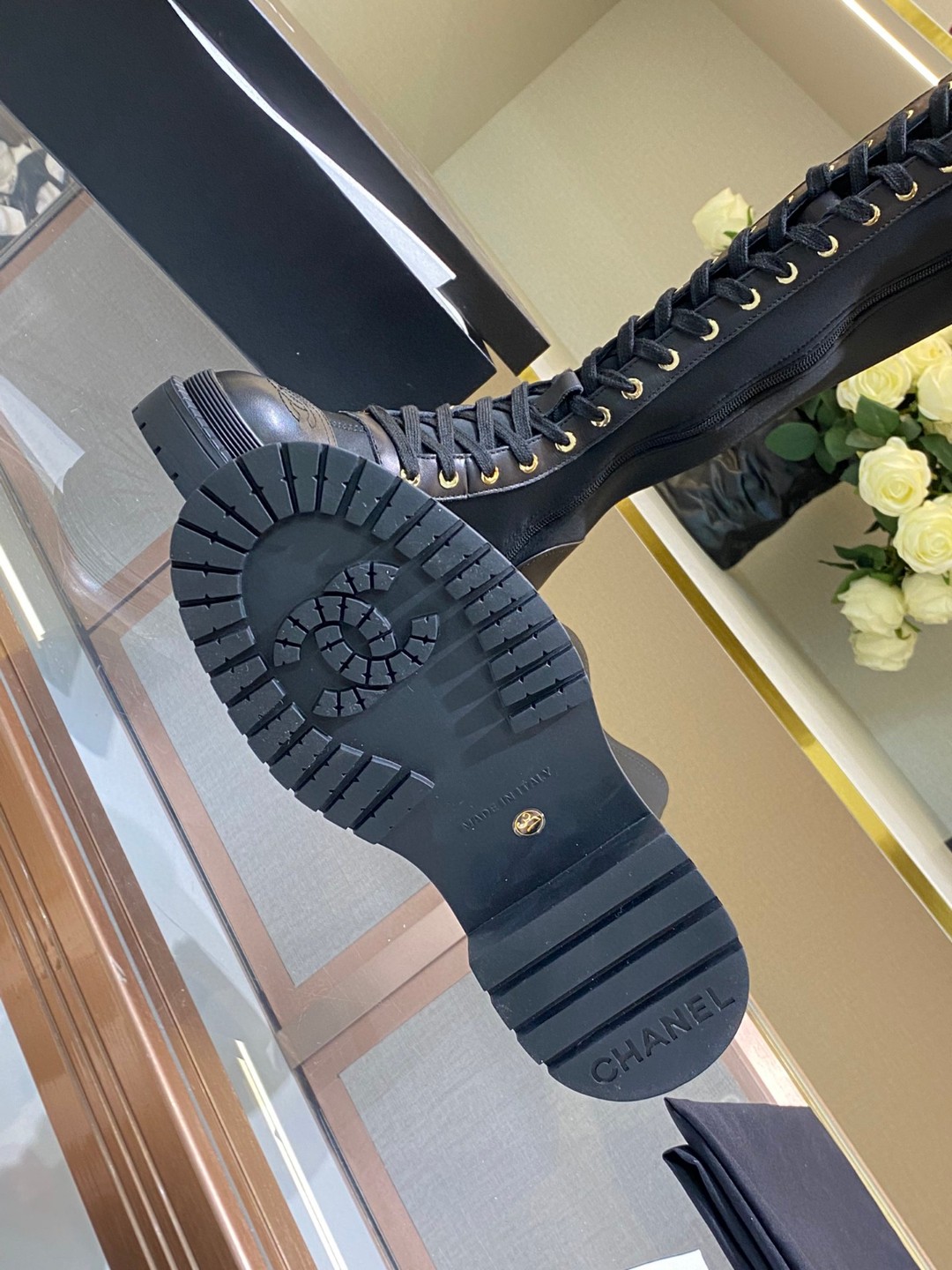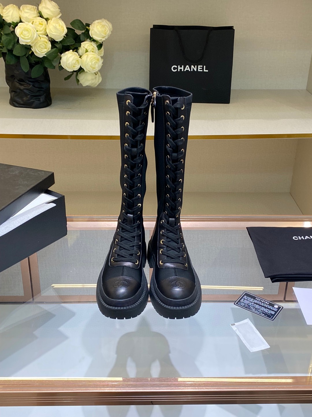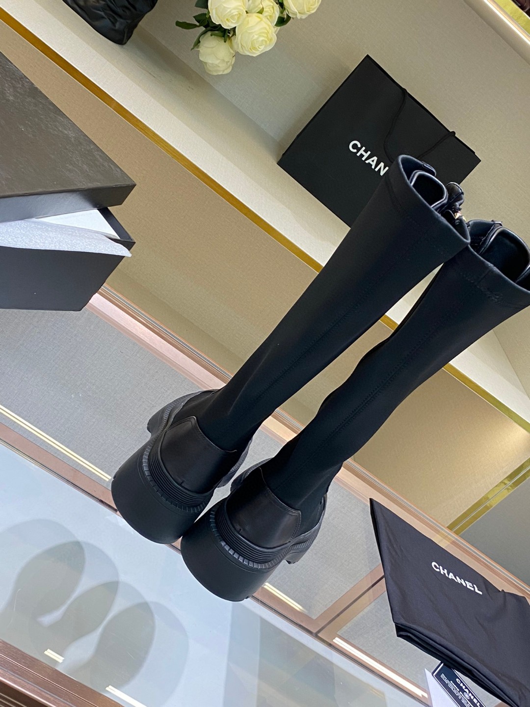 シャネル 高品質 レースアップ ロングブーツ レディース 2210DXJ410-CHA6043