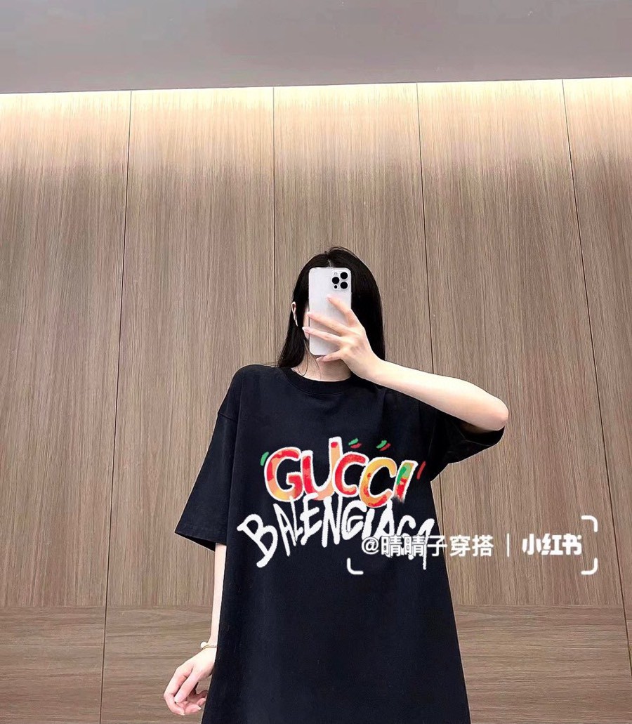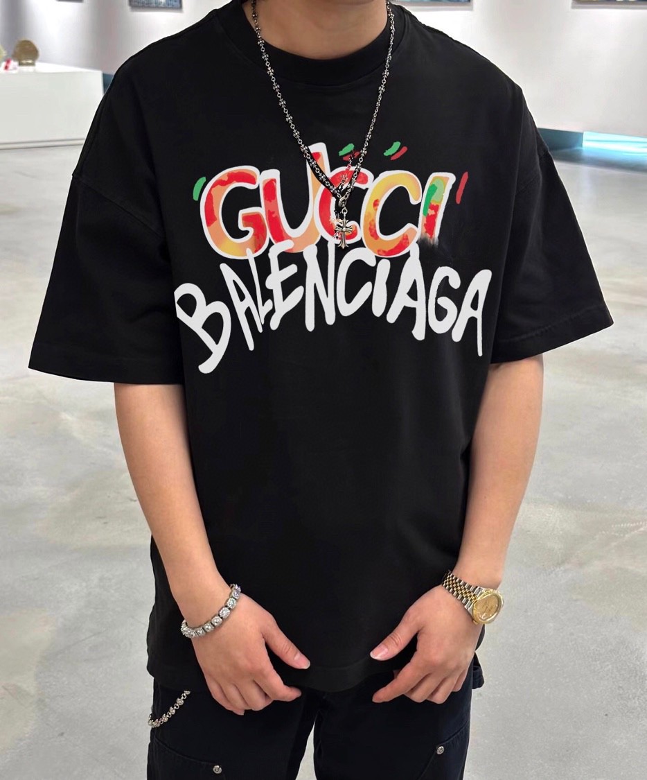 人気商品 バレンシアガ×グッチ 恋人 半袖Tシャツ 半袖トップス 2305XBJ85-BAL4693