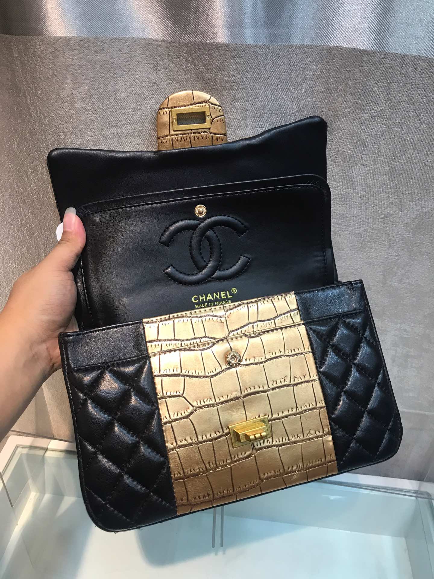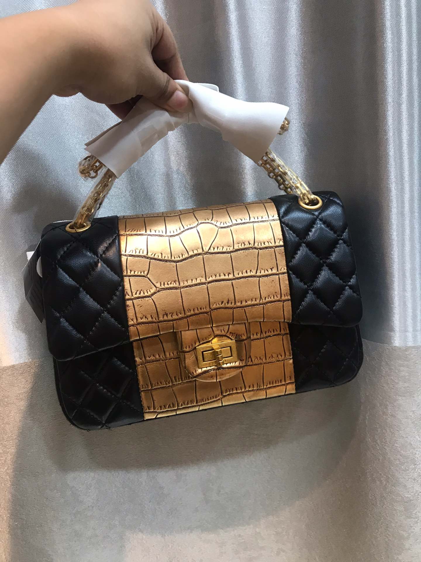 素材:ラムスキン+ワニ柄牛革