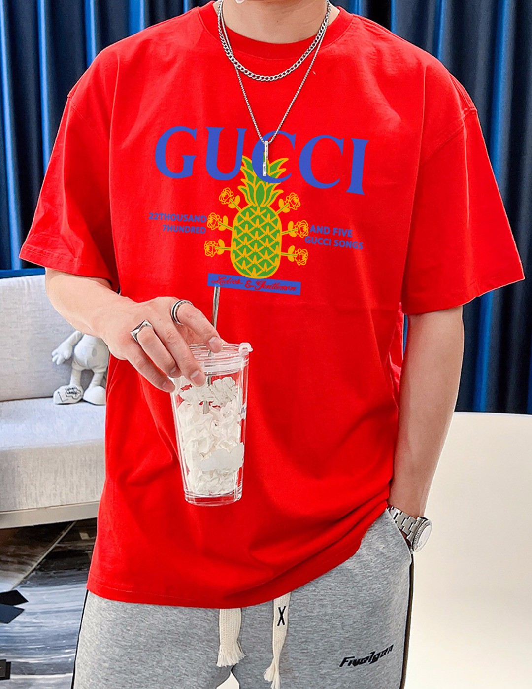 22SS激安 GUCCI グッチ 半袖Tシャツ 夏季 トップス 2204AAJ100-GU26908